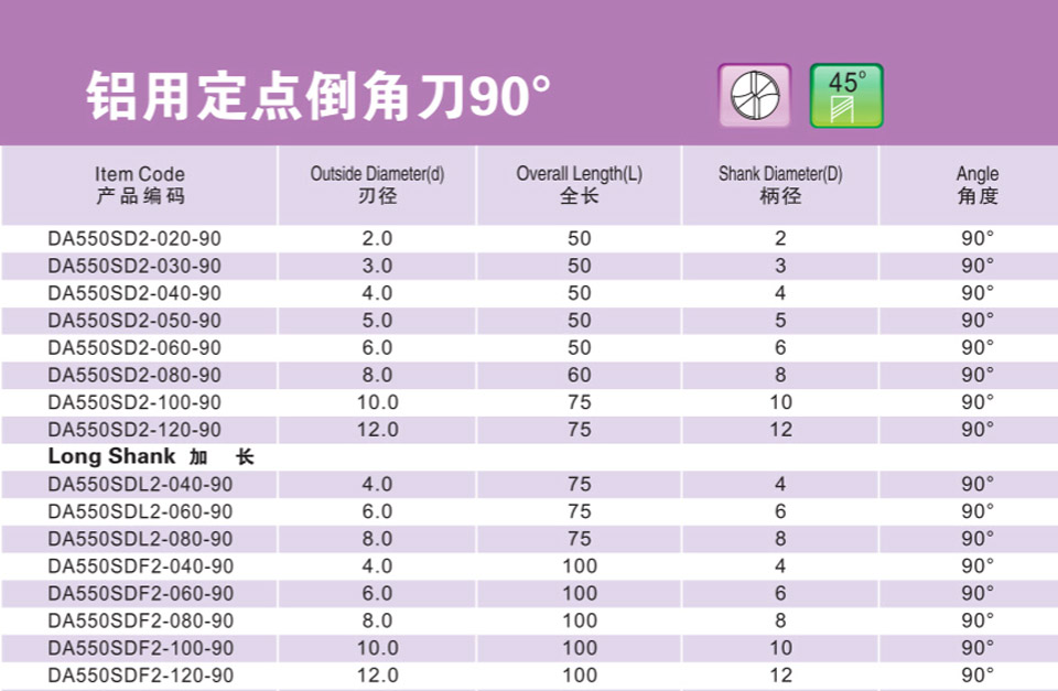 鋁用定點倒角刀 90 °