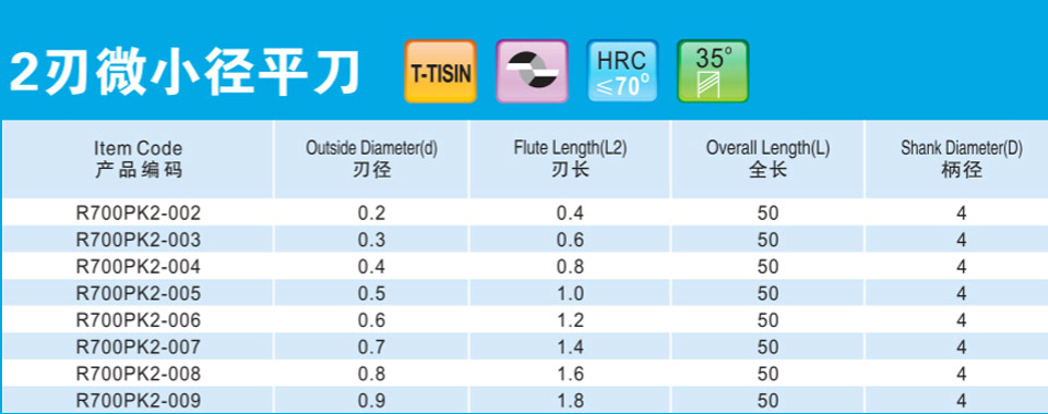 2刃微小徑深溝平刀
