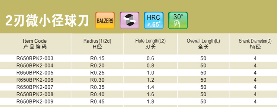 2刃微小徑深溝球刀