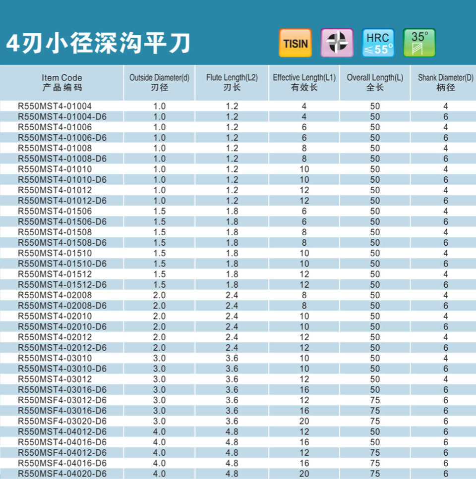 4刃小徑深溝平刀