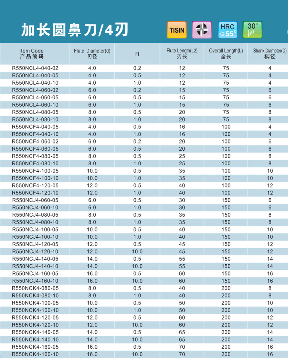 4刃加長高速圓鼻刀