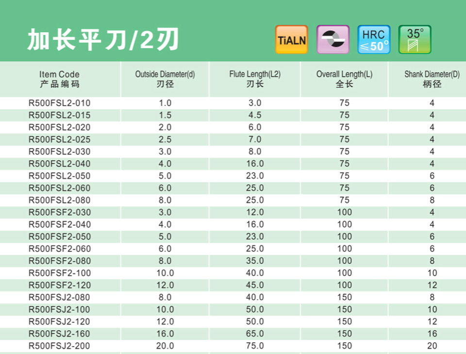 2刃微小徑深溝平刀