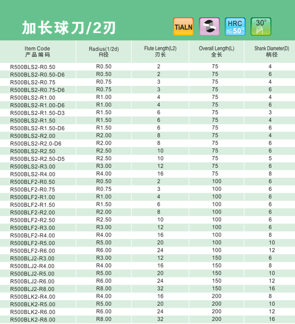 2刃加長高速球刀